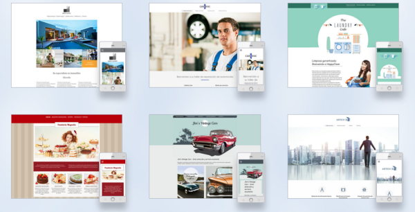Un claro y sencillo ejemplo es la popular 1and1.es que ofrece miles de plantillas de diseño personalizables y fáciles de seleccionar según el contenido que quieras compartir, además de contar con el registro de tu dominio. Este tipo de diseños facilita mucho la creación de una página web ya que son diseños limpios, sencillos y fáciles de personalizar a través de los colores o la colocación del texto en una determinada zona.