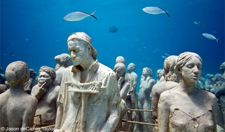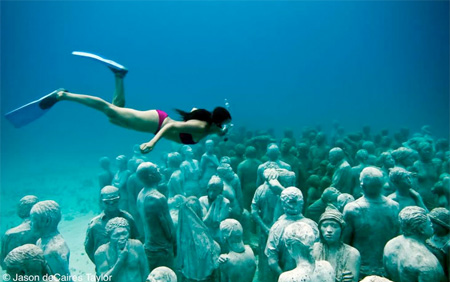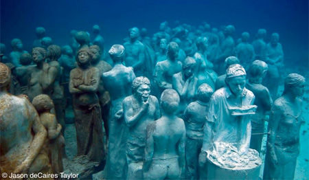 Uno de los artistas cuyo arte no para de sorprender al mundo entero es Jason deCaires Taylor. Este fabuloso artista crea esculturas que vivirán bajo el agua. Han leído bien. Taylor ha creado prácticamente una comunidad de personas de piedra que vivirán por siempre bajo el agua convirtiéndose en la atracción principal de muchos visitantes a sus respectivos puntos artísticos.